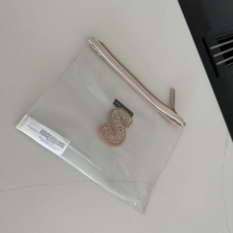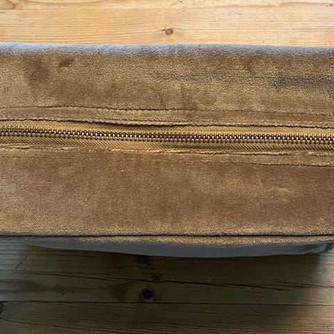 Selger en rosa toalettmappe med et stort og et lite rom.