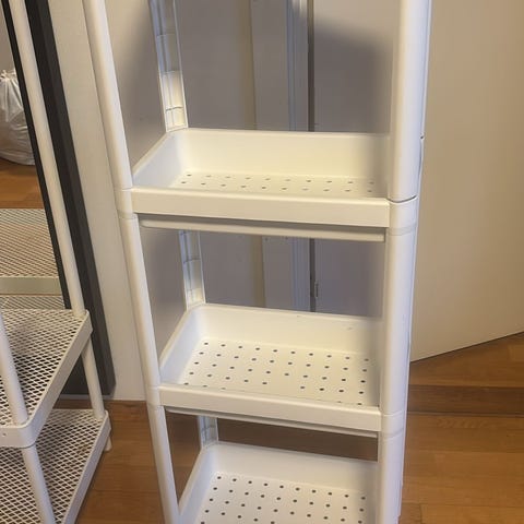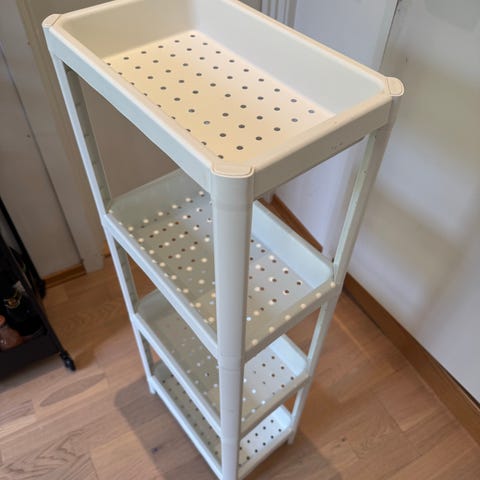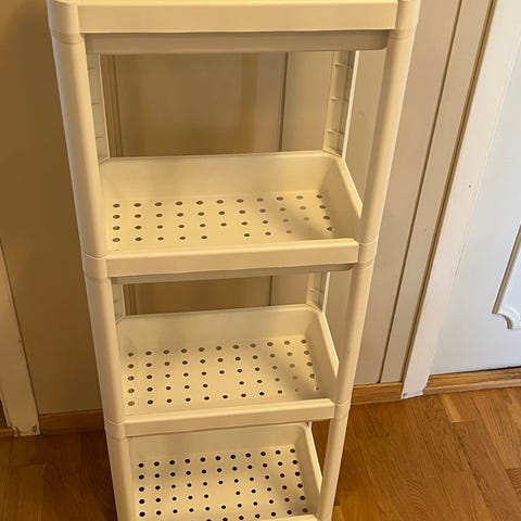 IKEA Vesken hylle med hjul i hvit farge (plast), perfekt til smale rom, mellom vaskemaskin eller vask på badet etc.