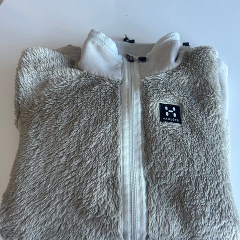 God og varm Haglöfs fleecejakke for herre i størrelse L. Jakken er svart og egnet for både aktivitet og hverdag. Den har hel glidelås og to lommer med glidelås.