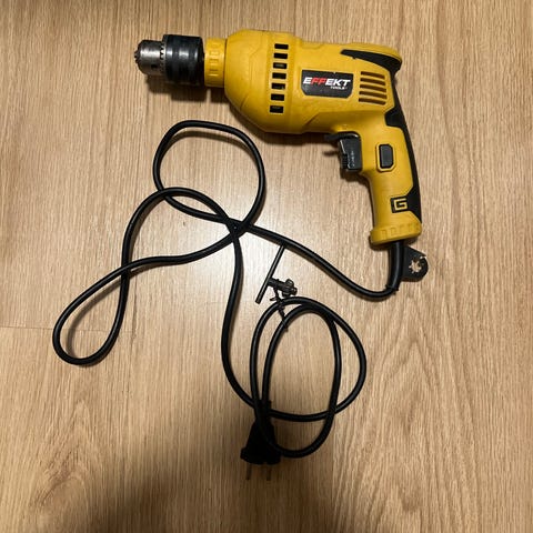elektrisk drill med ledning. Verktøyet er egnet for boring i ulike materialer og har et robust design. I god stand. Jeg bor i Kolsás og er ofte i Oslo. Møte i Oslo er mulig.