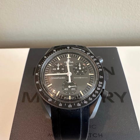Vanskelig å sette «rett» pris på denne, men ser at Omega/Swatch «Mission to the moon» serien som ikke akkurat er sjelden går for fra 3-4.000,- og opppver, så denne må jeg forsiktig lansere som en sjelden årgangsvin «som ikke er å få tak i», og sette en pris som er mer enn de 130€ den kostet i 2007, men som ut ifra nettsøk på brukte modeller ser ut til å ha steget godt i pris siden. Eneste tilsvarende modell helt ny som denne, som var tilgjengelig(se bilde nr 2), kostet der 245€, så bør dette være en veldig god pris.