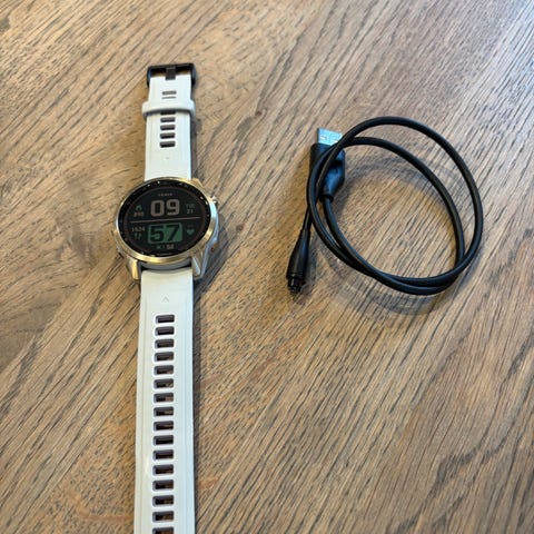 Selger en Garmin Fenix 7 Pro Sapphire Solar (47mm) i carbon gray DLC. Klokken er som ny, med kun små, kosmetiske merker i bezel – ellers i svært pen stand. Ripefritt safirglass. Alt fungerer 100 % som det skal.