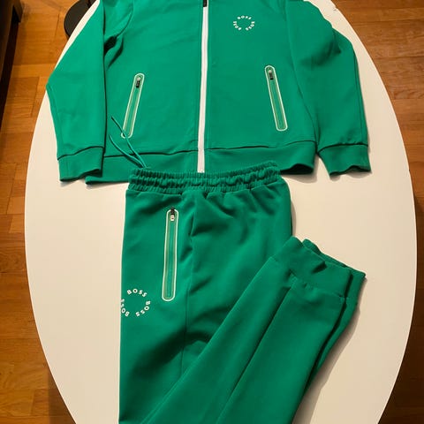 Selger en svart Hugo Boss tracksuit (hoodie + bukse). Brukt svært lite og fremstår som nesten ny. Clean og tidløs look, god passform og høy kvalitet slik Hugo Boss er kjent for.
