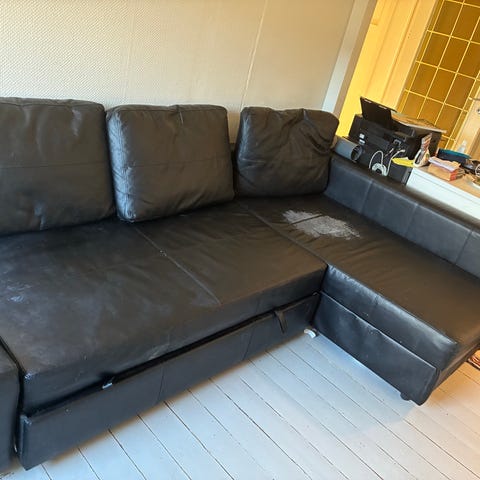 Pent brukt hjørne sovesofa med lagringsplass. Gis bort på grunn av flytting.
