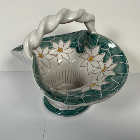 Antikk Italiensk kjeramikk kurv håndmalt /laget. Selges. Meget forseggjort.