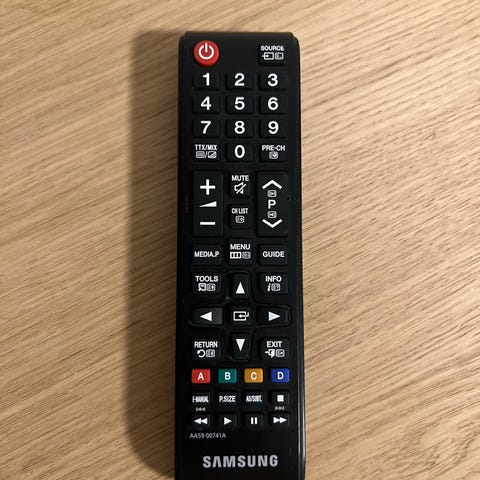 BN59 fjernkontroll for Samsung TV. Brukes til forskjellige TV-typer (Smart, 4K UHD, QLED, LED, LCD) og noen ganger andre enheter, med appknapper (Netflix, Prime Video, Rakuten)