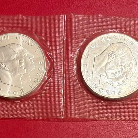 Sølvmynt 25 krone 1970. Selges 690kr.