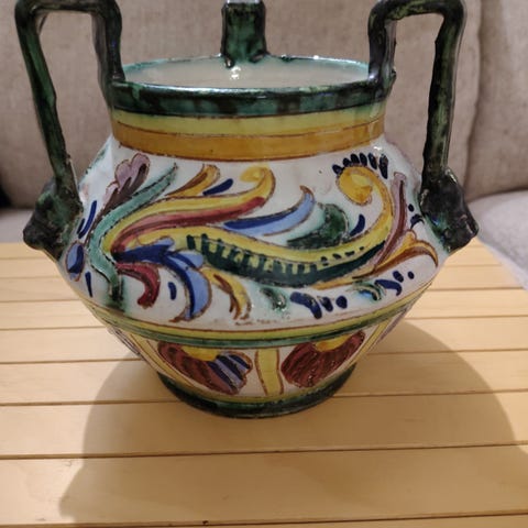 Håndmalt italiensk majolikakeramikk vase. Selges.