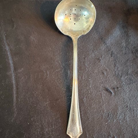 bestikk gaffel i sølvplett 19,5 cm lang. Gaffelen har et klassisk design med dekorative detaljer på håndtaket.
