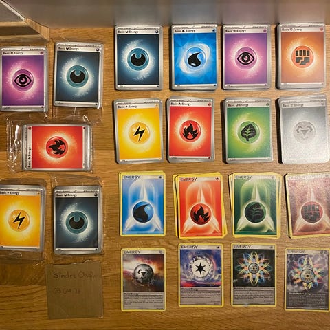 Pokémon Basic Energy kortpakke med ulike energityper.