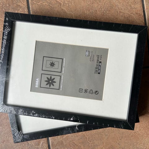 IKEA bilderammer i et sett med ulike størrelser og farger, inkludert svart, hvit og sølv. Rammene er laget for å huse bilder og fotografier, og kan brukes til dekorasjon i hjem eller kontor.