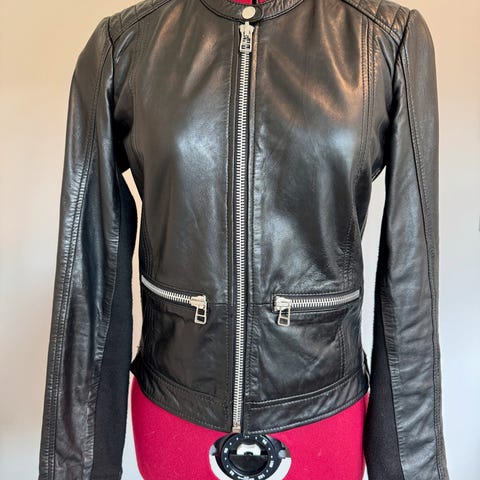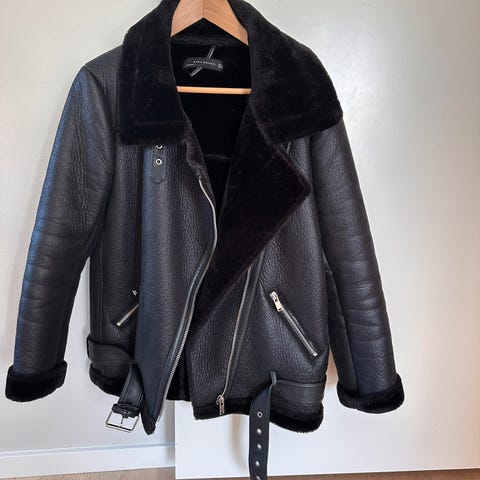 Ny varm ubrukt oversized bikerjakke i sort, foret med saueskinn. Nypris var 1200 kr.