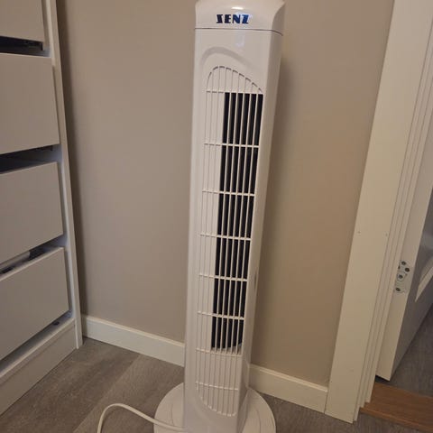 Logic gulv vifte i hvit farge. Utstyrt med justerbar høyde og tre hastighetsinnstillinger. Designet for å gi effektiv luftstrøm i rom. Passer til bruk i hjem eller kontor. Bør hentes.