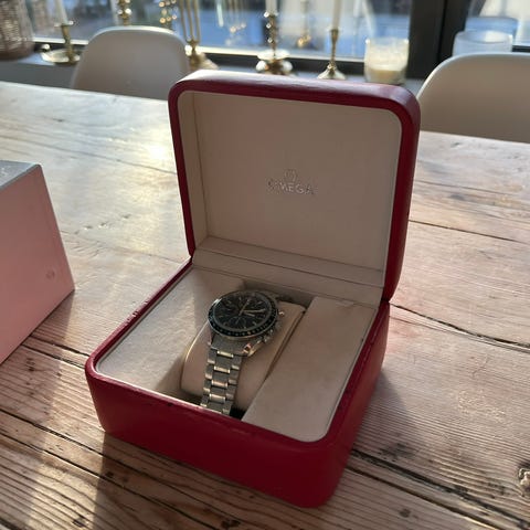 Ingen skader eller riper. Brun reim følger ikke med, men ekstra svart reim fra Omega, akkurat samme som sitter på klokka.