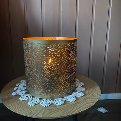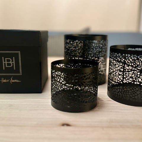2-pk lyslykter fra Halvor Bakke, se bilde for ytterligere informasjon. Pent brukt, noen få ubetydelige striper i bunn under der hvor telysene står. Gir ett utrolig fint og koselig lys. Nypris: 449,-