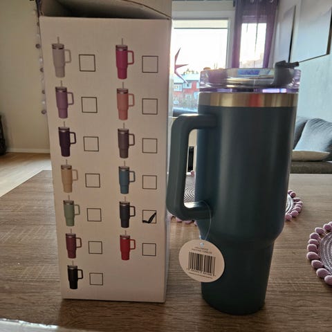 Tumbler termokopp i grønn farge. Laget for å holde drikker varme eller kalde. Har håndtak for enkel bruk.
