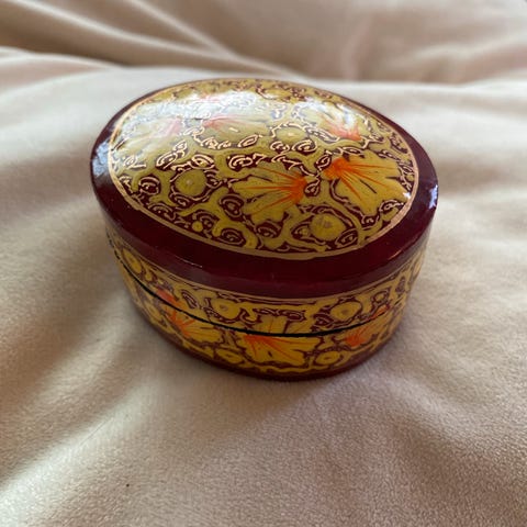 En vakker håndmalt eske i pappmache fra Indis.