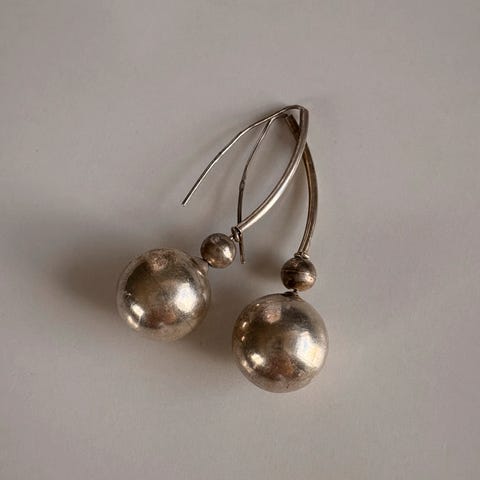 Ørepynt i sølv formet som hjerter.