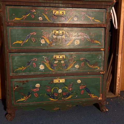 Kommode laget i tre med flere skuffer. Har en naturlig trefinish og passer til ulike rom for oppbevaring. Håndtak på øverste skuff knukket og litt bruksmerker, men fortsatt masse bruk igjen.