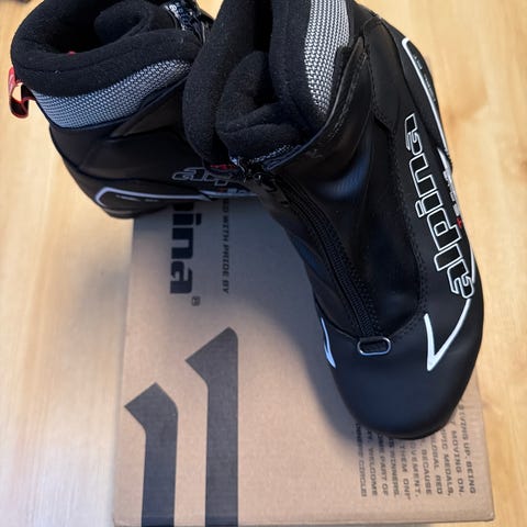Alpina PST Jr langrennssko i størrelse 31. Skoen har svart farge med røde detaljer og er laget for barn. Overmaterialet består av syntetisk materiale, og skoen har borrelåslukking for enkel tilpasning.