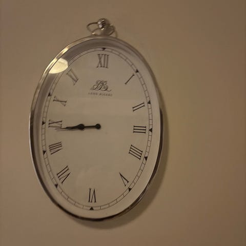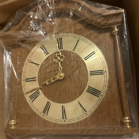 Vintage veggklokke, ca 80 cm i høyden og ca 60 cm i bredden