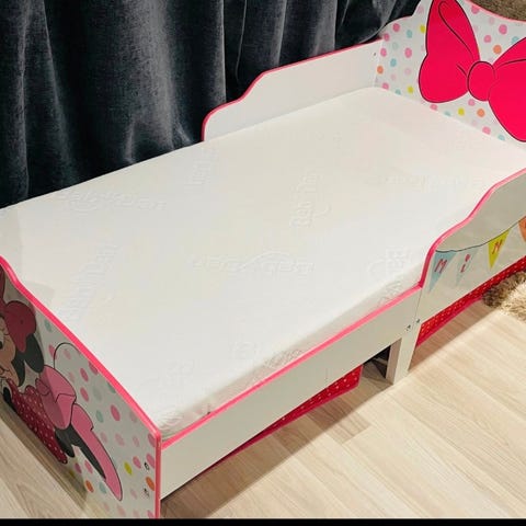Hvit køyeseng med madrasser. Kjøpt brukt, men tror den er fra Skeidar. Solid seng i god stand. Noen klistremerker som enkelt kan fjernes.