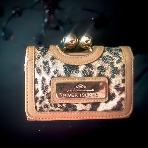svært lite og pent brukt pengebok fra river island. plass til mange kort, og har lomme for mynter med glidelås. nydelig detaljer på denne