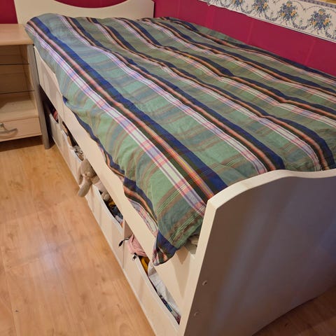 Barneseng (hjullaster) 90x200cm med oppbevaring og madrass