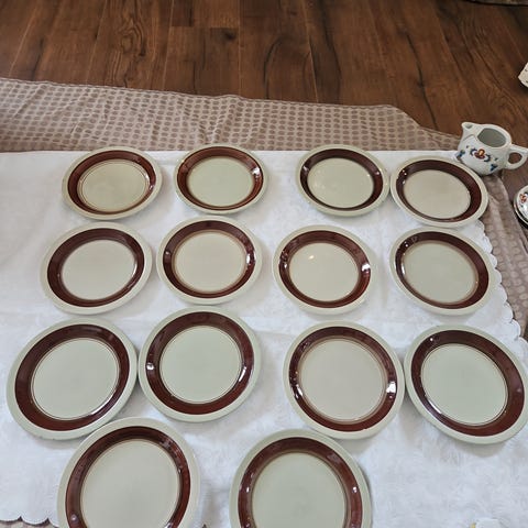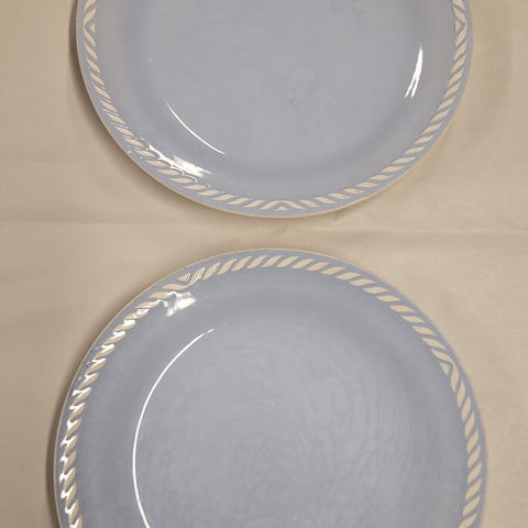 6 frokost tallerkener- god stand, 1 tallerken med nagg.