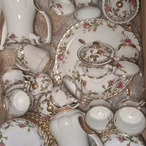 Kaffeservise, servise, blomster, vintage, klassisk, asjetter, kaffekopper, te, porselen