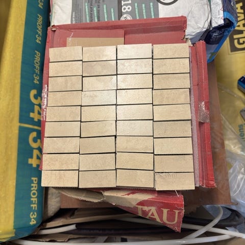 Det er mellom 500 og 750 klips totalt, tilstrekkelig antall kiler for alt jeg har gjort. Verktøy og kiler brukt men bra.