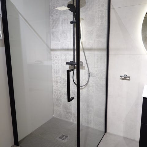 Tori Dusjhjørne i glass med sort ramme