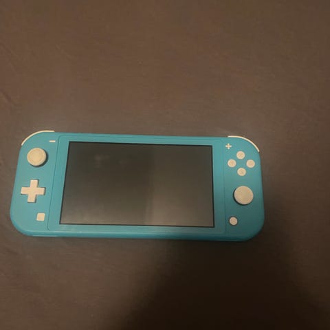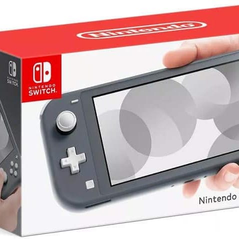 Nintendo Switch Lite spillkonsoll i grå farge. Bærbar konsoll designet for håndholdt spilling med innebygde kontroller. Leveres med strømadapter og 128 GB minnekort. Alt nullstilt.