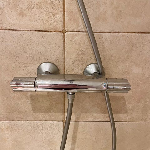 Pent brukt termostatbatteri i krom til badekar/dusj.