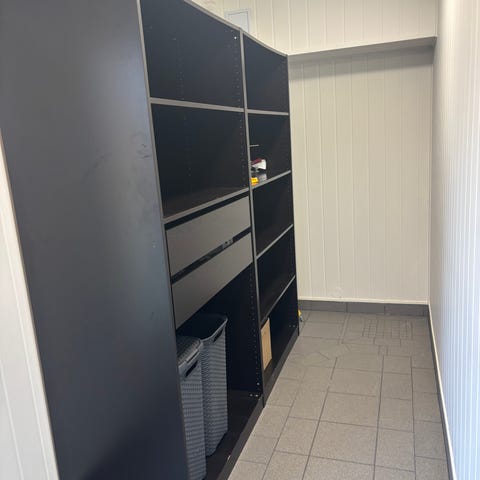 3 x 180 cm høye hyller. Pris per hylle.