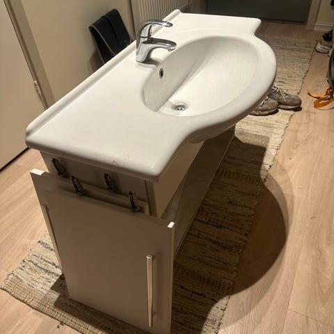 Hvit servant og blandebatteri