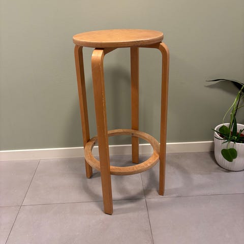 Artek Alvar Aalto krakk laget i bjørk. Designet av Alvar Aalto. Barkrakk, høyden er uten ryggen.