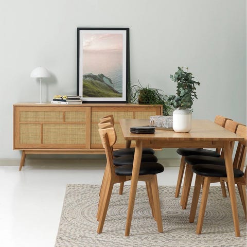 Spisebord i eik fra Ellos. 80x80 med en ekstra klaff på 24,5 cm. Nypris 3.599