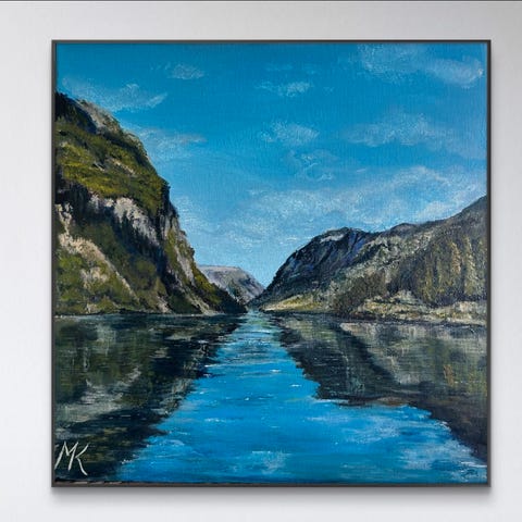 Maleriet gir rommet karakter og ro, og passer perfekt i stue, hytte eller kontor. Unikt verk, det finnes kun ett eksemplar.