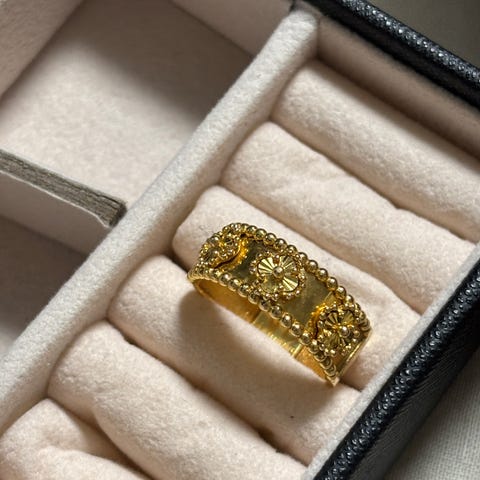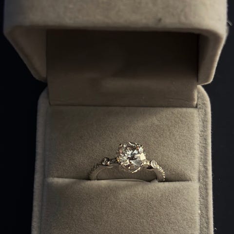 Forlovelsesring med diamanter og tennisarmbånd med diamanter.
