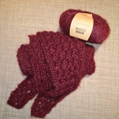 Håndstrikkede skjerf/trekantsjal laget i garnet