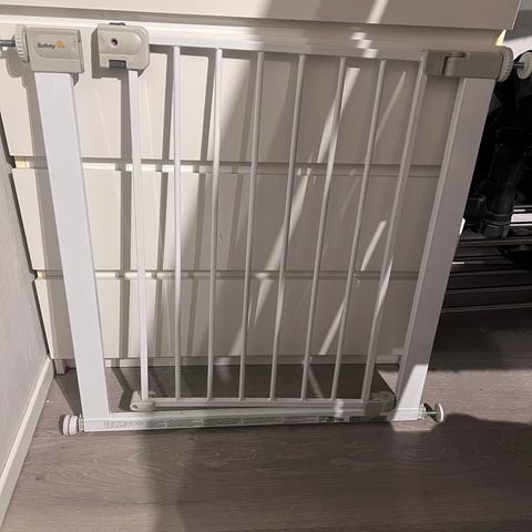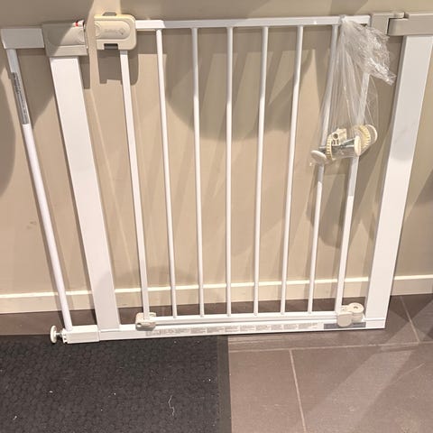 Selger en helt ny og ubrukt Yngri Y4 sikkerhetsgrind, kjøpt på Barnas Hus. Aldri åpnet eller montert.