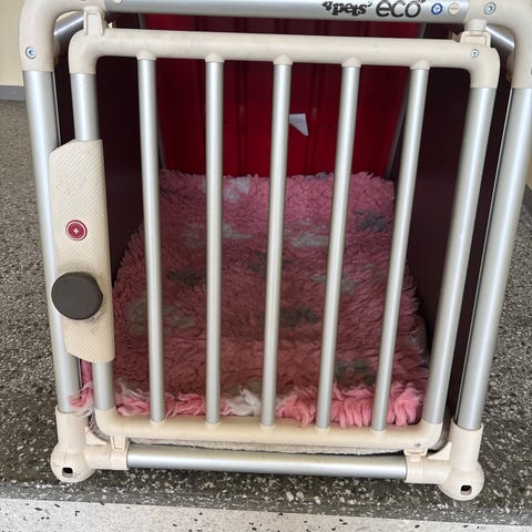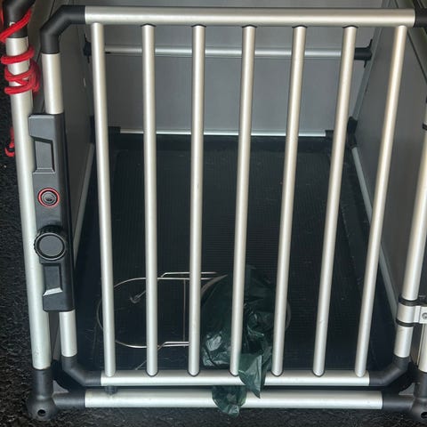 Pent brukt hundebur til bil, passer en liten hund. Buret kan låses,