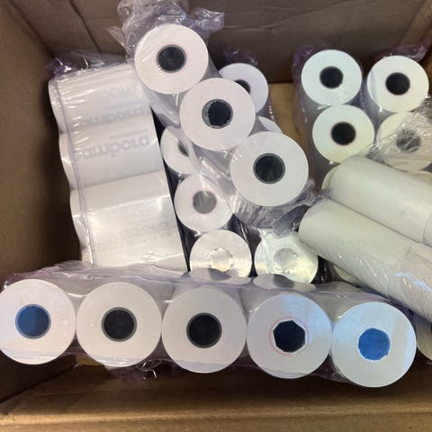 14 kassaruller med gjennomslag.