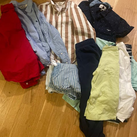 Klespakke i str 122 og 122/128,klærne er synlig brukte men uten hull. Kun en bukse har synlig begynnende hull på ene kneet. Merker som KappAhl,name it og H &m