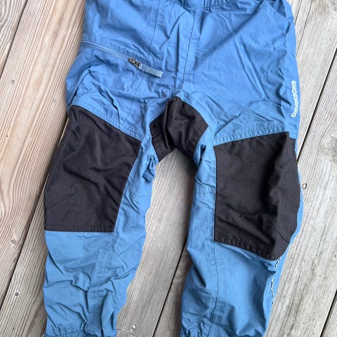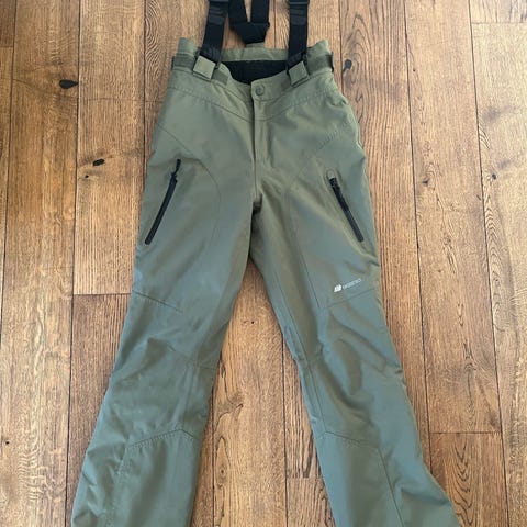 God og varm utebukse med seler. Passer både til utelek og slalåm. Har elastisk og borrelås nederst på beina. Det er en liten rift nederst på det ene beinet (se bilde). Buksa selges derfor billig. Ellers er den som ny.