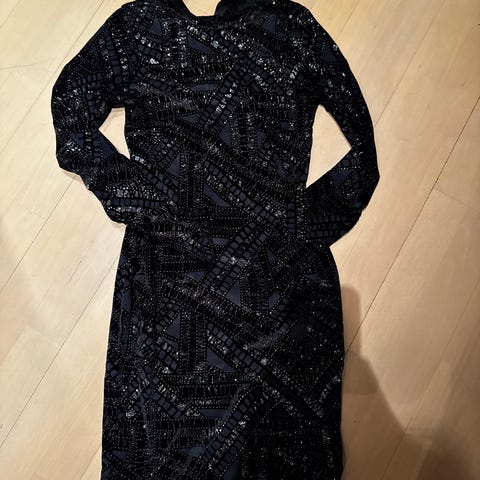 Second Female festkjole/hverdagskjole i størrelse XS, flerfarget mønster, glitter. Lett gjennomsiktig.