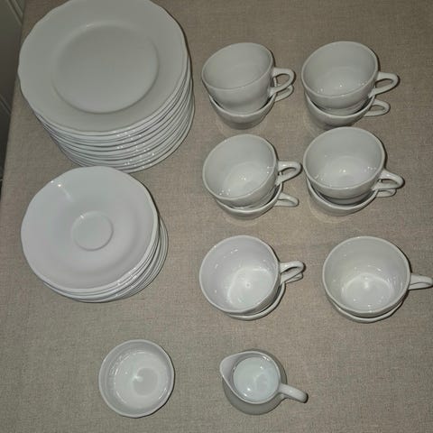 Melitta 102 og kaffekanne i hvitt porselen