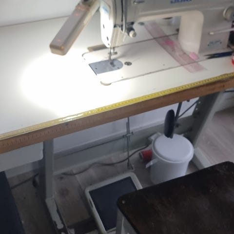 Industrisymaskin med bord for sying av kraftig materiale. Pent brukt og i god stand. Ca 10 år gammel, nypris ca kr 17.700, selges for 8.500. Brukerhåndbok følger med. Må hentes i Oslo i løpet av januar 2026.