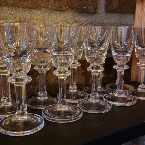 9 stk Tangen klar rødvinsglass 15cl fra Hadeland glassverk selges for 75kr per stk, eller 500kr samlet. Pris per glass hos Hadeland glassverk er 599kr.